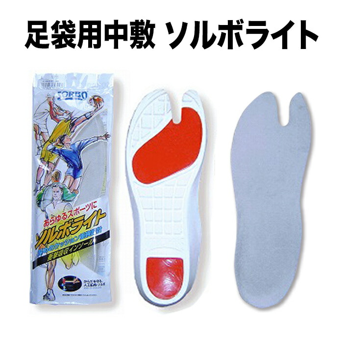 歩いたり走ったりする時にかかとにかかる衝撃を吸収する事で、足や膝・腰などの負担を和らげる効果があります。 また、歩き方や踏ん張る時に起こるねじれや横ずれも足・膝・腰へ悪影響を及ぼします。 人工筋肉「ソルボセイン」は、足裏やかかとへの衝撃を効果的に軽減します。 祭足袋の衝撃を吸収する為の中敷で、スポーツ用に開発された優れものです。 地下足袋が足にぴったりのサイズだと、ソルボを入れることで足袋が小さく感じることがございます。 地下足袋を1サイズ大きなものに変更してソルボを入れることをオススメします。 |