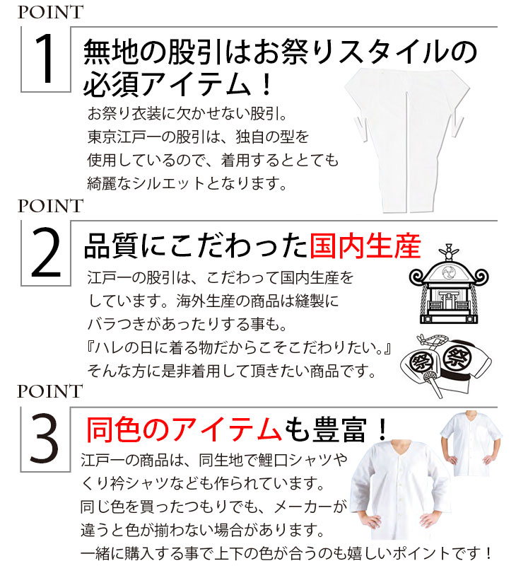 | 商品説明 | お祭りに欠かせない股引です。 サイズ豊富な東京江戸一はピッタリサイズがきっと見つかります! お祭り衣裳を粋に着こなして、素敵な時間を過ごして下さい! |