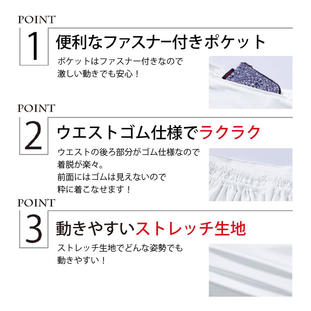 | 商品説明 | ポケット付きのストレッチズボンです。鯉口シャツとも相性バッチリ! 子供サイズもあるので、幅広い年齢層で揃えられます。 |