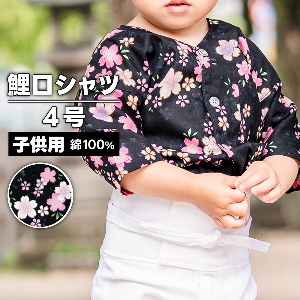 ・[1個までメール便-可] 鯉口シャツ 子供用 nm_5822 さくら小黒 4号 | 祭り用 祭り用品 祭用品 祭り衣裳 祭り衣装 お祭り お祭 祭礼 イベント 余興 パーティー おしゃれ かっこいい 人気 普段着 子供 子ども 夏