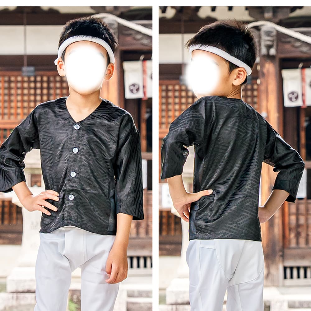 ・鯉口シャツ [fu-koi-botan] サヤ柄 ボタン 子供用 黒 白 紺 J-1~J-3 | 鯉口 シャツ 七分袖 祭り衣装 お祭り イベント おしゃれ キッズ 子ども 幼児 だんじり祭り だんじり 短め 短寸 紗綾 さやがた さや型 ジュニア 110 130 150