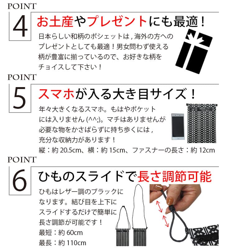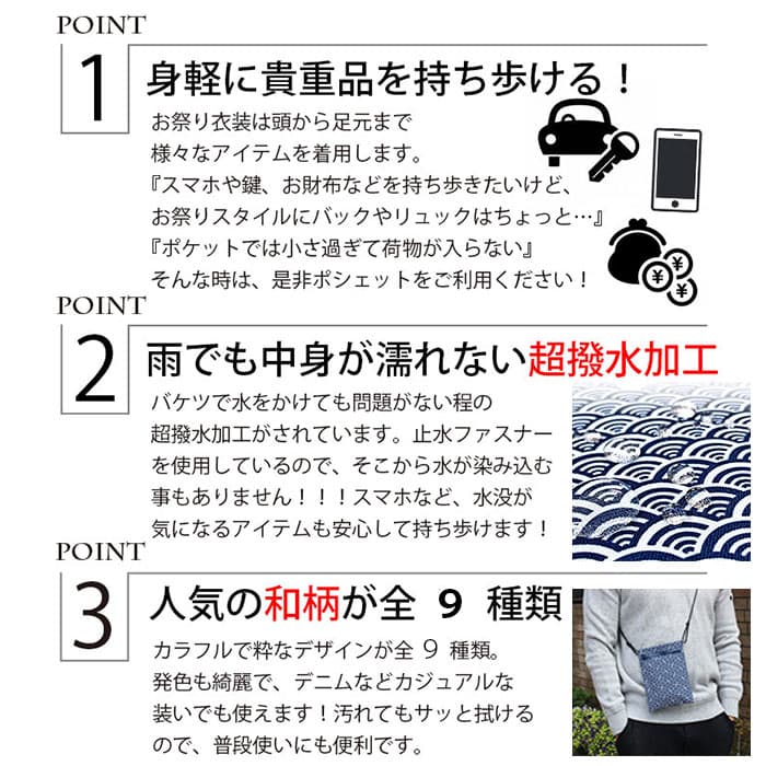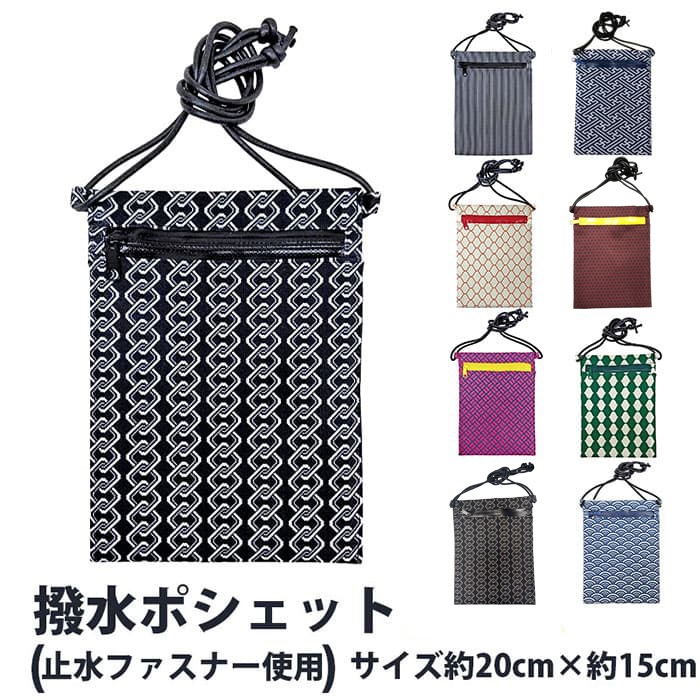 ・[メール便-送料無料] ポシェット 7219 (7221) 撥水ポシェット 各柄 | お祭り 祭 ポーチ カバン 斜めがけ ショルダー 肩掛け 浴衣 スマホケース 携帯 iPhone プレゼント お土産 防水 雨対策 梅雨 撥水 雨 小物入れ 作業用 長さ調節 柄 和柄 レイングッズ ミニポシェット