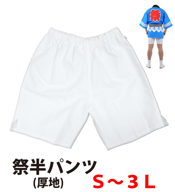 ・[メール便-送料無料]祭半パンツ nm_5179 白 厚手 S~3L | 祭り衣装 お祭り お祭 祭礼 イベント 余興 夏用 夏祭り 半ズボン 衣装 神輿 みこし ハッピ 半だこ はんだこ お神輿 綿 半パッチ 半股引 ズボン式 パンツ 簡単 半パンツ ウエストゴム 祭り ホワイト 厚地