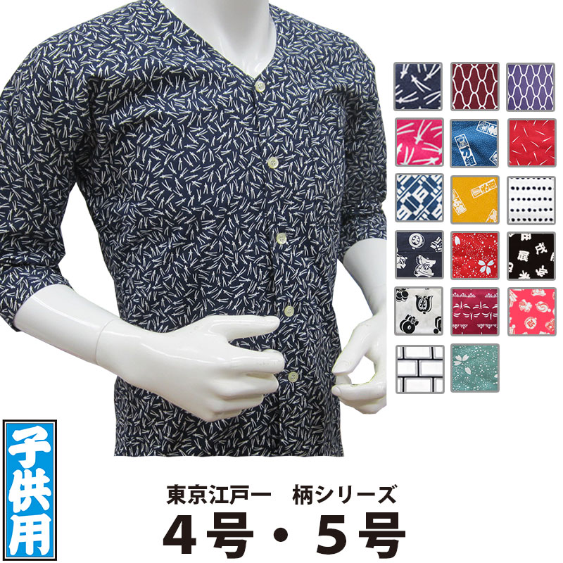 ・鯉口シャツ 東京江戸一 子供用 柄 4号 5号 | 祭り 祭り用品 祭用品 祭 お祭り 祭り衣装 衣装 イベント おしゃれ かっこいい かわいい 人気 ユニフォーム 子ども こども キッズ 子供 鯉口 襟なし シャツ 和風 和柄 柄 綿 ジュニア 江戸一 楽天