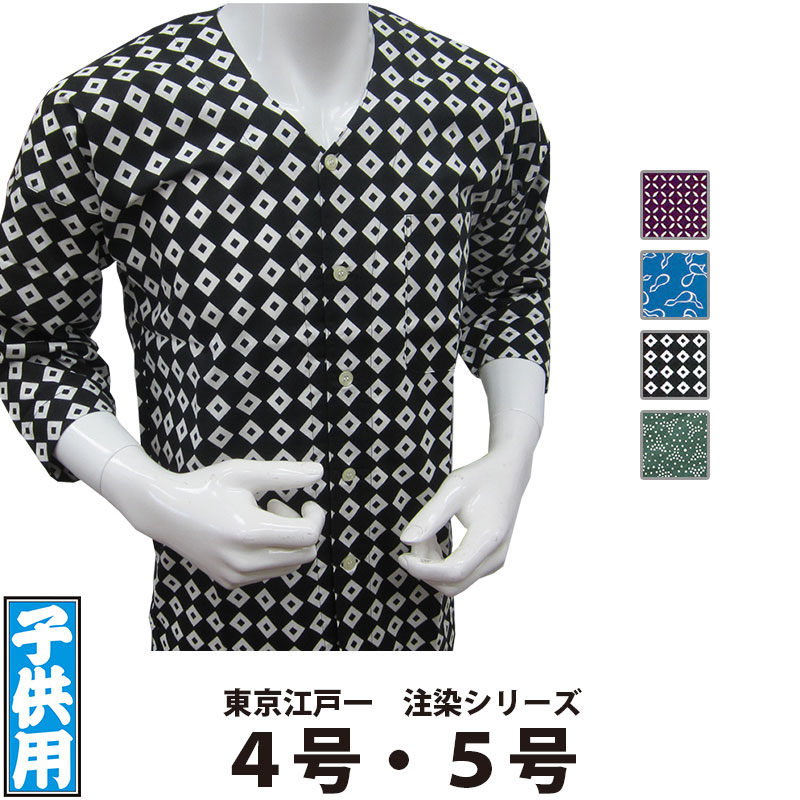 ・鯉口シャツ 東京江戸一 子供用 注染 4号 5号 | 祭り 祭り用品 祭用品 祭 お祭り 祭り衣装 衣装 イベント おしゃれ かっこいい かわいい 人気 ユニフォーム 子ども こども キッズ 子供 鯉口 襟なし シャツ 和風 和柄 柄 綿 ジュニア 江戸一 楽天
