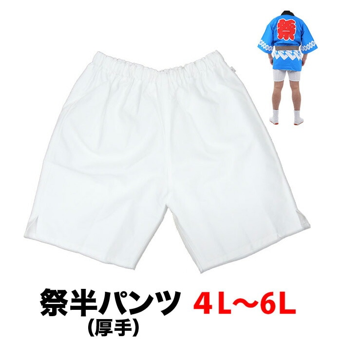 ・祭半パンツ nm_5179 白 厚手 4L~6L | 祭り衣装 お祭り お祭 余興 夏用 夏祭り 半ズボン 衣装 神輿 みこし 半だこ はんだこ お神輿 綿 半パッチ 半股引 ズボン式 パンツ 簡単 半パンツ ウエストゴム 祭り ホワイト 4L 5L 6L 厚地 大きいサイズ