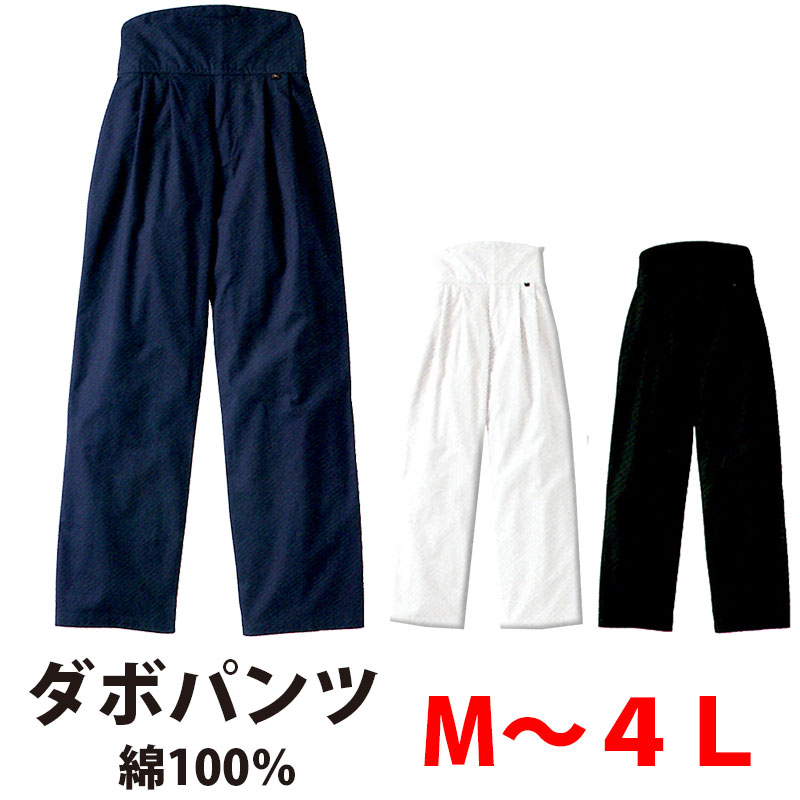 | 商品説明 | お祭りなど、様々なシーンで活躍するダボパンツ。 優れた吸汗性があり、ソフトな肌触りの 綿 100%でお肌にも優しく、着心地抜群です。 白 、 黒 、 紺 の3色展開で、同じ生地のダボシャツもあります。お祭りで着用する場合は、是非上下セットでお買い求め下さい。 |