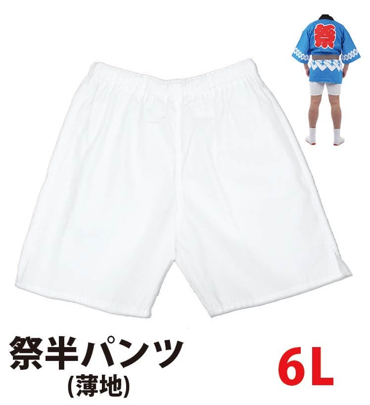・[メール便-送料無料] 祭半パンツ nm_5180 白 薄手 6L | 祭り衣装 お祭り お祭 祭礼 イベント 余興 夏用 夏祭り 半ズボン 衣装 神輿 みこし ハッピ 半だこ はんだこ お神輿 綿 半パッチ 半股引 ズボン式 パンツ ひも付き 簡単 半パンツ ウエストゴム 祭り ホワイト 薄地