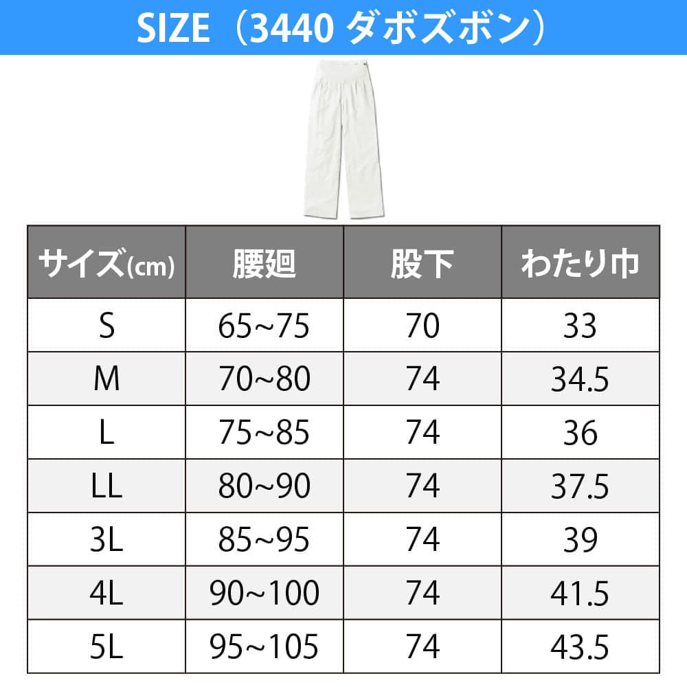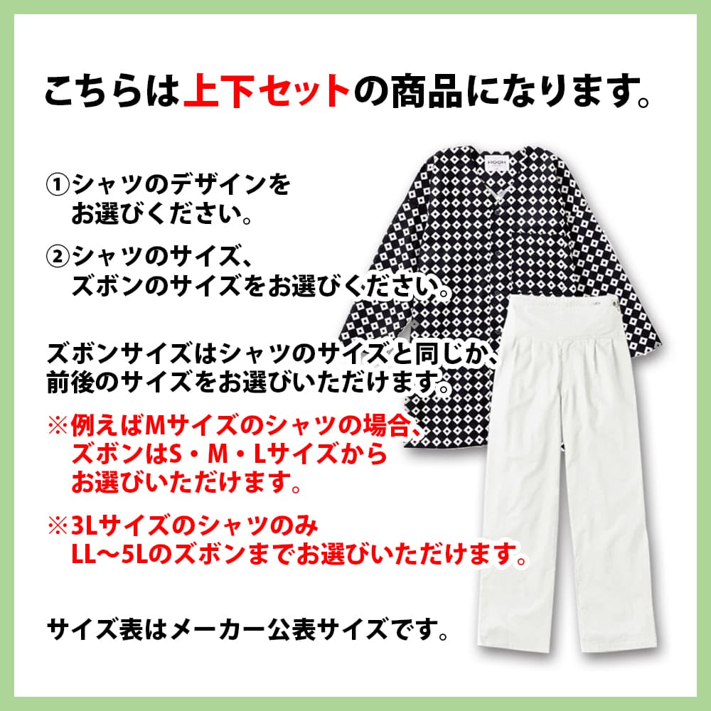 | サイズ規格 | シャツ:S~3L ズボン:S~5L |