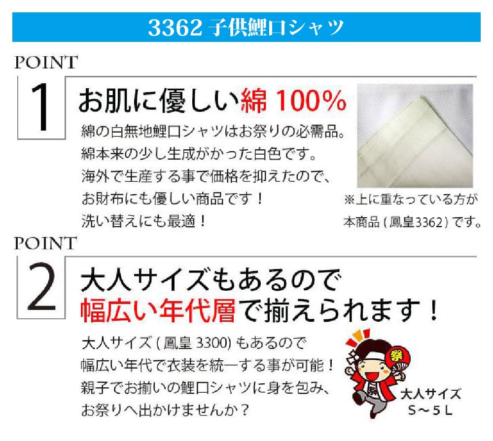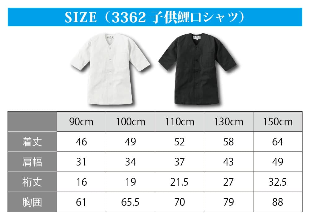 ・鯉口シャツ 上下セット 鳳皇_3362 3442 子供用 白 黒 90~150cm