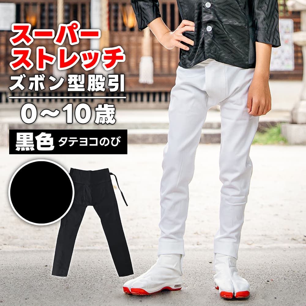 ・ズボン型股引 [toku] スーパーストレッチ 黒 0~10歳 [特注]| 股引き 股引 ズボン パッチ バッチ だんじり ふとん太鼓 太鼓 神輿 みこし 祭 祭用品 祭り衣装 お祭り お祭 チャック ファスナー マジックテープ 簡単 子供 キッズ 子供用 履き方 簡単 ストレッチ パンツ 服