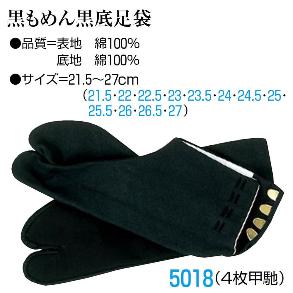 ・足袋 nm_ 5018 黒もめん黒底足袋 4枚コハゼ 左右セット 26.5cm ~ 27.0cm | 祭 衣装 祭り衣装 お祭り ユニフォーム イベント 祭事 祭礼 舞台 踊り